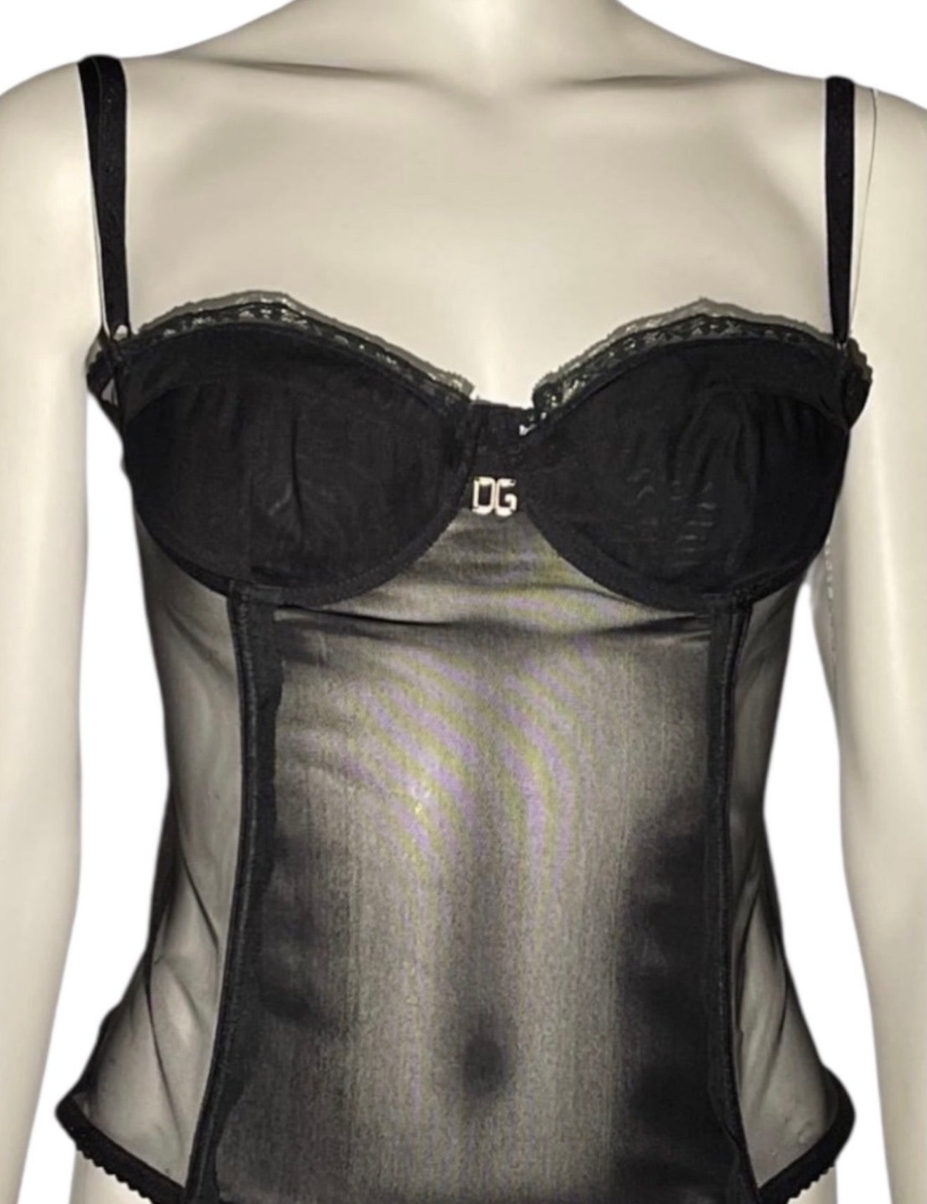 Dolce & Gabbana Sheer Mesh Corset With Silver Logo